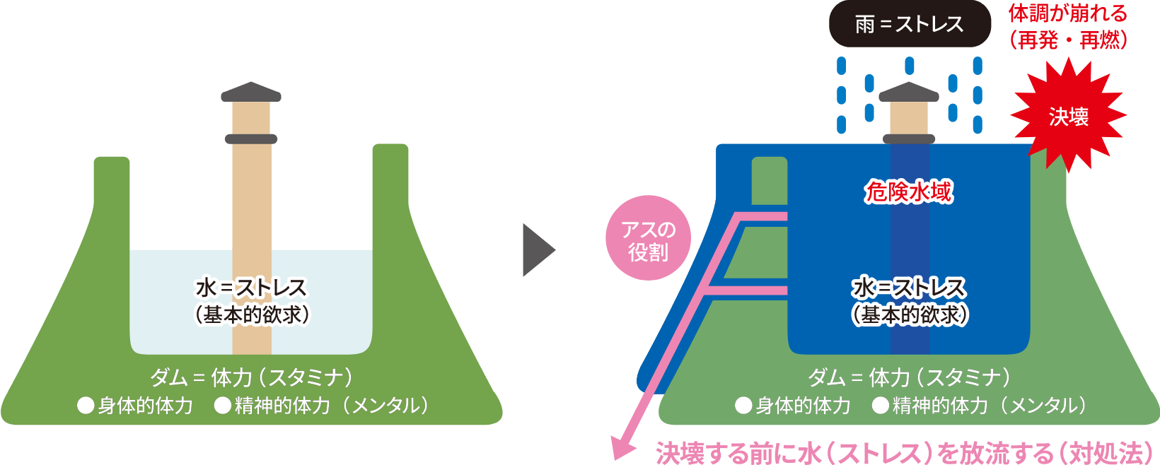 ダムを体力(スタミナ)に例えると、 スタミナは「身体的体力」と「精神的体力(メンタル)」の2種類があります。